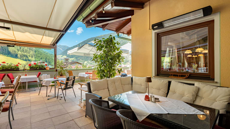 Das Verpflegungsangebot umfasst: Halbpension, Frühstück, Mittagessen oder Abendessen. Zu einem gelungenen Start in den Urlaubstag lädt ein Frühstücksbuffet ein. Die regionale und internationale Kochkunst bereitet den Gästen ein kulinarisches Erlebnis. Das Menü hält auch vegetarische Köstlichkeiten bereit. Zusätzlich zum Hotelrestaurant können die Gäste die Après Skibar, die White Lounge Bar sowie das Restaurant Brücke aufsuchen. Das Brückenstadl ist als Ausgehmöglichkeit für Mayrhofen/Zillertal-Besucher zu betonen.