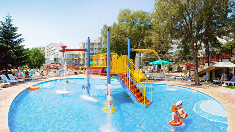 Das 4‑Sterne‑Hotel Laguna Garden befindet sich im Zentrum des Ferienortes Albena, nur ca. 150 m vom langen, feinsandigen Strand entfernt. Es liegt am Anfang der autofreien Promenade mit zahlreichen Geschäften, Restaurants und Freizeitmöglichkeiten – ideal für Urlauber, die zentral wohnen möchten. Die Hotelanlage bietet einen Außenpool mit mineralhaltigem Wasser, ein Kinderbecken mit Rutche und großzügige Liegebereiche. Ein reservierter Strandabschnitt ab der 3. Reihe mit Sonnenschirm und 2 Liegen pro Zimmer ist im Preis inbegriffen. Das Green All Inclusive-Paket umfasst alle Mahlzeiten in Buffetform, Snacks sowie lokale Getränke von 10:00 bis 23:00 Uhr. Es gibt Themenabende, Show-Cooking und bei Aufenthalten über 7 Nächte ein Dine-Around-Programm (außerhalb der Hochsaison). Das Hotel ist Teil des „Sports Around®“-Programms – Gäste können viele Sportarten kostenlos ausüben: Beachvolleyball, Tischtennis, Wassergymnastik, Darts, Badminton, Aerobic und mehr. Gegen Gebühr: Tennisplätze, Reiten, Wassersport, Fitness, Minigolf, Schwimm- und Surfschule. Insgesamt stehen im Resort über 100 Sporteinrichtungen zur Verfügung. Laguna Garden ist ideal für Familien, Paare und aktive Urlauber, die Albena in zentraler Lage mit Nähe zum Meer, Unterhaltung und Sport genießen möchten.