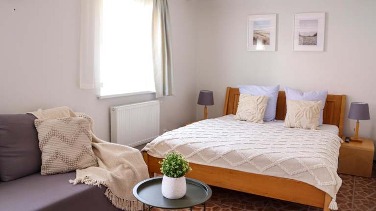 Das Motel Laguna befindet sich am Rande eines Waldes und liegt nur 200 m vom Ufer des Kurischen Haffs entfernt. Die Lage bietet eine malerische Umgebung und ist ideal für Naturliebhaber und Erholungssuchende. Die Stadt Nida ist nur 25 Gehminuten entfernt und bietet eine Vielzahl von Restaurants, Geschäften und Sehenswürdigkeiten.