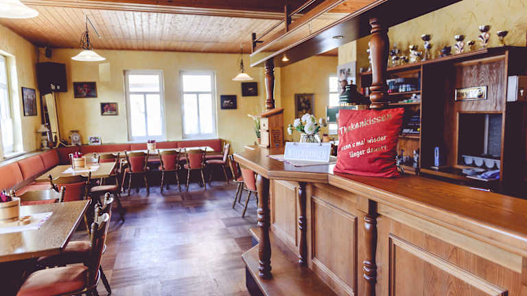 Jeden Morgen steht ein reichhaltiges Frühstücksbuffet bereit. Im Restaurant, das im Landhausstil eingerichtet ist, geniessen die Gäste eine kleine Auswahl an Thüringer Spezialitäten und regionalen Bieren.