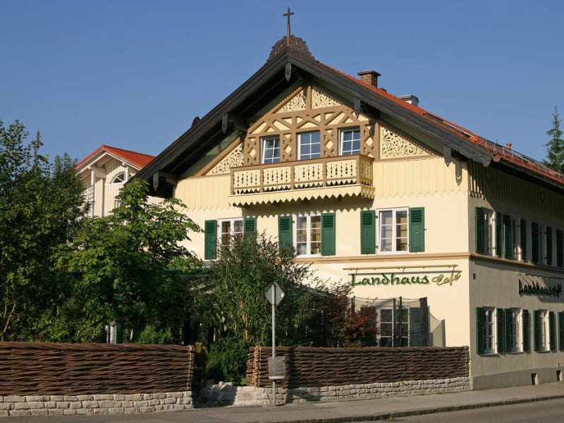 Im Hotel Landhaus wird jeden Morgen ein reichhaltiges Frühstück angeboten. Das Restaurant serviert eine Auswahl an bayerischen Gerichte und ist auf Kuchen sowie Crêpes spezialisiert. Gäste können im gemütlichen Biergarten oder im Wintergarten speisen, was eine einladende Atmosphäre schafft.