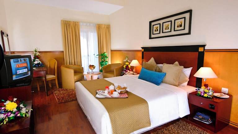 Das Landmark Plaza Hotel in Dubai bietet seinen Gästen eine günstige Lage im Stadtteil Deira, mit Blick auf den Al Nasser Platz. Die geräumigen Zimmer sind klimatisiert und mit modernen Annehmlichkeiten wie Sat-TV und einer Minibar ausgestattet. Das Hotel verfügt über zwei Restaurants, in denen internationale Küche serviert wird, sowie ein rund um die Uhr geöffnetes Café. Die Gäste können auch das Einkaufszentrum mit 50 Geschäften in der Atrium-Lobby des Hotels nutzen. Die günstige Lage ermöglicht es den Gästen, das Einkaufszentrum Deira City Centre und den Dubai Creek in kurzer Zeit zu erreichen.