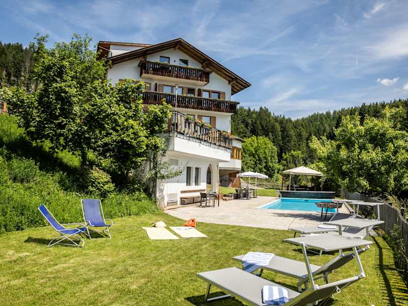 Für pure Entspannung nach einem erlebnisreichen Tag sorgt unser Freibad mit großzügiger Liegewiese und traumhaftem Blick auf die Dolomiten. Ob eine erfrischende Abkühlung an warmen Sommertagen oder einfach nur die Seele baumeln lassen – hier finden Sie Ihre ganz persönliche Wohlfühloase. Die ruhige Lage unseres Hauses und die gemütlichen Zimmer bieten Ihnen einen Rückzugsort zum Erholen.
