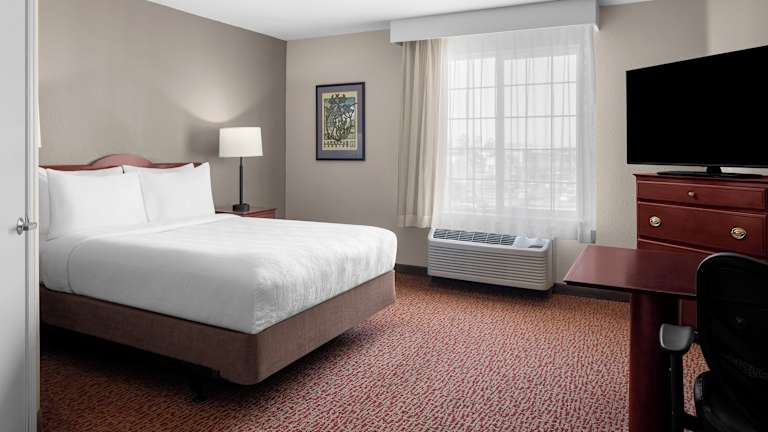 Die Zimmer sind mit Teppichböden ausgestattet und beinhalten ein Queensizebett sowie ein Sofabett. Jedes Zimmer verfügt über eine Klimaanlage, eine Heizung, einen Kühlschrank, eine Mikrowelle, eine Tee-/Kaffeemaschine, einen Geschirrspüler, einen Safe, einen Schreibtisch, ein Telefon, ein TV-Gerät, ein Radio, einen Wecker und kostenfreies Wifi. Die Badezimmer sind mit einer Dusche und einer Badewanne ausgestattet und bieten zudem Kosmetikartikel sowie einen Haartrockner. Rollstuhlgerechte Zimmer mit barrierefreiem Badezimmer sind ebenfalls verfügbar.
