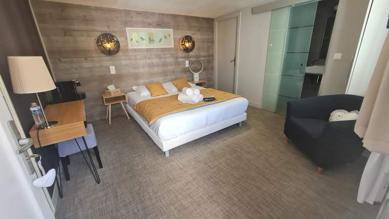 Die Unterkunft befindet sich in Vaux-sur-Mer, weniger als 200 m vom Strand Plage du Conseil entfernt. In der näheren Umgebung liegen zudem der Strand Plage de Nauzan, der Strand Plage de Saint-Sordelin sowie das Royan Museum. Entfernungen zu weiteren Sehenswürdigkeiten sind 46 km zum Bahnhof Saintes, 3,4 km zum Kongresszentrum und 4,4 km zum Royan Golf.