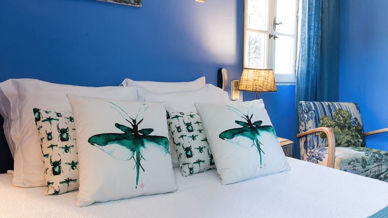 Die individuell eingerichteten Zimmer sind in unterschiedlichen Farben gehalten und bieten eine jeweils andere Atmosphäre. Alle Zimmer sind klimatisiert, verfügen über ein eigenes Bad, einen TV und bieten Aussicht auf den Strand Plage du Bestouan oder den Garten mit alten Kiefern. WLAN steht den Gästen kostenfrei zur Verfügung.