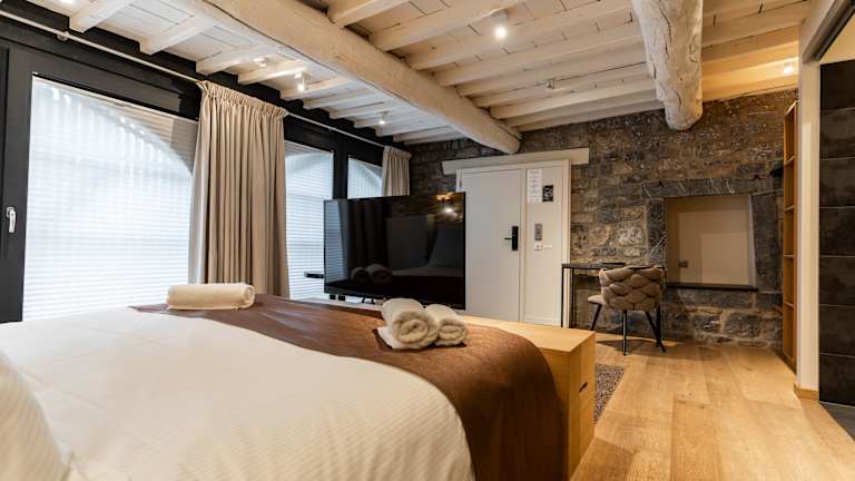 Die gemütlichen Zimmer sind in Erdtönen eingerichtet und verfügen über ein Doppelbett oder ein Queensize-Bett. Zur Ausstattung gehören ein Sitzbereich, ein Flachbild-TV, ein Telefon sowie Gratis-Wifi. Die Badezimmer sind mit einer Badewanne oder Dusche ausgestattet. Das Hotel bietet zudem Nichtraucherzimmer.