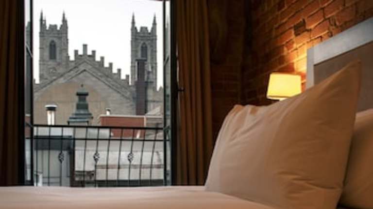Das Hotel verfügt über 105 Nichtraucherzimmer, die alle mit Annehmlichkeiten wie Daunendecken, modernen Bädern und Flachbildfernsehern ausgestattet sind. Die Zimmer zeichnen sich durch große Fenster aus, die viel Tageslicht hereinlassen, und einige bieten einen Blick auf die Altstadt von Montreal.