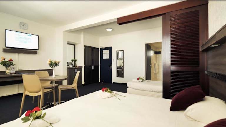 Das Hotel Le Paris befindet sich im Stadtzentrum von Noumea, nur 5 Fahrminuten vom Hafen, Geschäften und Restaurants entfernt. Die Bucht Anse Vata und die Bucht des Citrons sind in 10 Fahrminuten erreichbar, und die Place des Cocotiers, der zentrale Platz von Nouméa, liegt ebenfalls in der Nähe.
