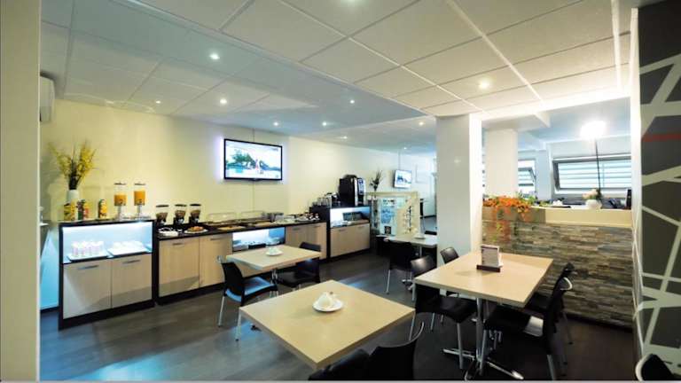 Das Hotel bietet verschiedene gastronomische Einrichtungen, darunter ein Restaurant, ein Café und eine Bar. Morgens wird ein kontinentales Buffetfrühstück serviert, um den Tag zu beginnen.