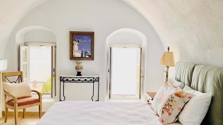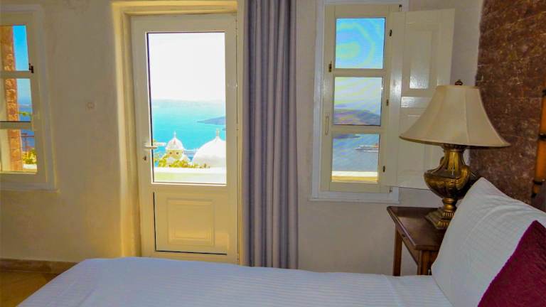 Alle Zimmer sind individuell gestaltet und verfügen über einen Queensize-Bett, Klimaanlage und ein eigenes Bad mit Marmorwaschbecken und Mosaikfliesen. Viele der Zimmer bieten einen herrlichen Meerblick auf die Caldera, den Vulkan und die Ägäis. Zudem steht in allen Zimmern kostenfreies Wifi zur Verfügung.