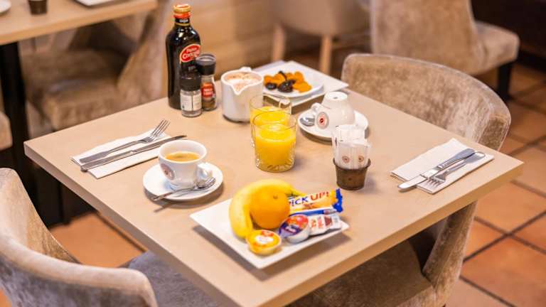 Im Hotel gibt es ein Restaurant, das Frühstücksoptionen bietet, wobei der Restaurantbetrieb am Sonntagabend und am Montag geschlossen ist. Zimmerservice steht ebenfalls zur Verfügung, und spezielle Ernährungsbedürfnisse können auf Anfrage berücksichtigt werden.