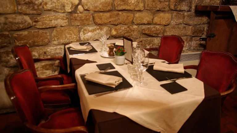 Das Bar-Restaurant des Ruisseau ist ein originaler Weinkeller mit heimeligen Steinwänden. Hier wird traditionelle französische Küche serviert, die mit regionalen Produkten zubereitet wird.