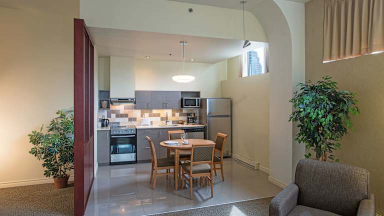 Die modernen Suiten sind mit einer voll ausgestatteten Küche versehen, die einen Esstisch, ein Kochfeld und einen Geschirrspüler umfasst. Jede Suite verfügt über einen Flachbild-Kabel-TV, einen Safe und eine Klimaanlage. Allergikerfreundliche Zimmer sind ebenfalls verfügbar.