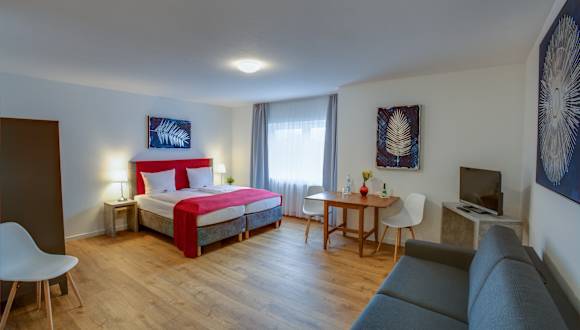 In unserem Hotel erwarten Sie freundlich und komfortabel eingerichtete Zimmer und Appartements. Alle Standardzimmer verfügen über Bad/Dusche, WC, Haartrocker auf Wunsch und einen Farb-TV (Flatscreen) Unsere Appartements bieten Ihnen viel Raum und sind zusätzlich mit einer Küchenzeile ausgestattet. Das WLAN steht Ihnen kostenfrei für 24 Stunden auf Ihrem Zimmer zur Verfügung. Das Mitführen von Haustieren ist in unserem Hotel erlaubt. Wir erheben eine Gebühr von 20 € pro Haustier und Nacht.
