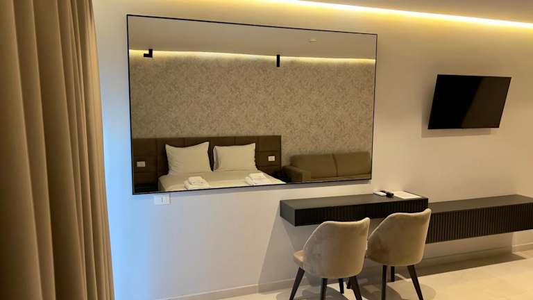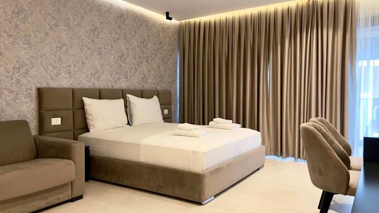 Die klimatisierten Zimmer sind ausgestattet mit einem Kleiderschrank, einem Safe, einem Flachbild-TV, einem Balkon sowie einem eigenen Badezimmer mit einem Bidet. Jedes Zimmer verfügt zudem über einen Kühlschrank.