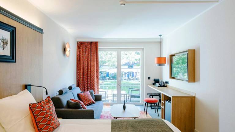 Die Zimmer sind ausgestattet mit einer Minibar, einem Safe und einem TV. Jedes Zimmer verfügt zudem über ein eigenes Bad mit einer Whirlpool-Badewanne, einem Haartrockner sowie einem WC. Haustiere sind auf Anfrage erlaubt und gegen eine Gebühr.