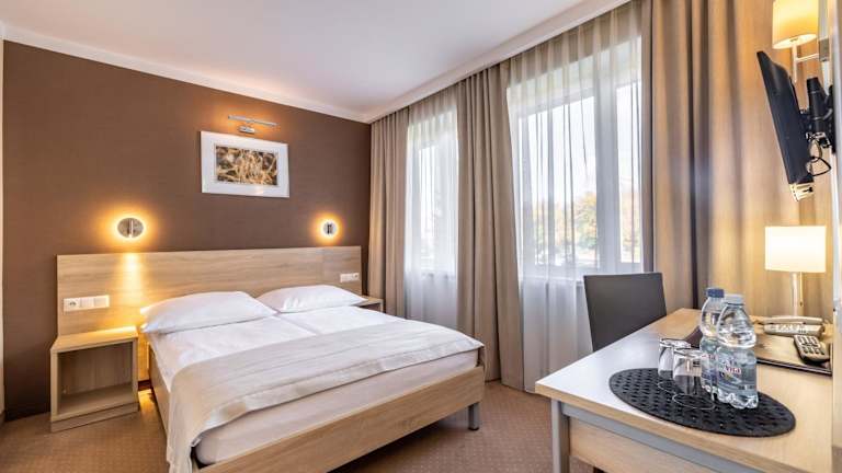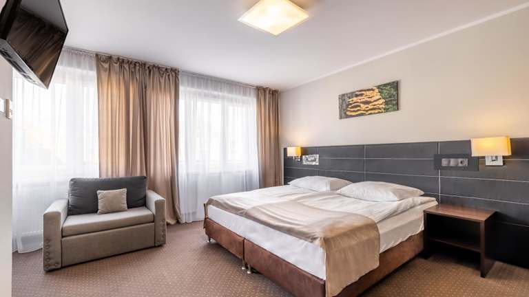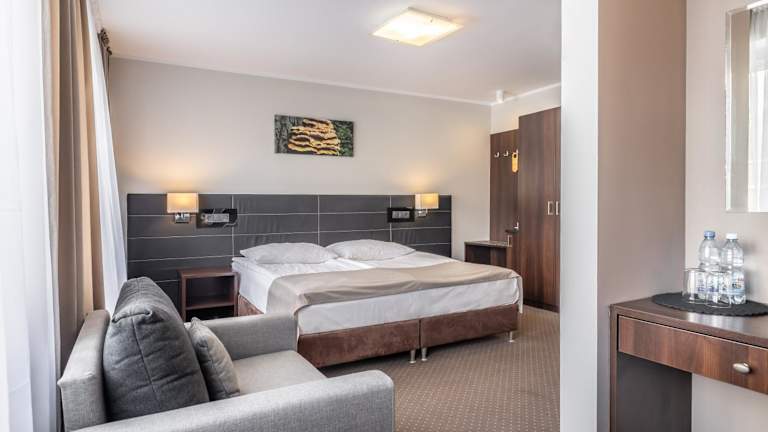 Das Hotel Leśny bietet elegante und gemütliche Zimmer mit kostenfreiem Wifi und Klimaanlage. Es ist ein Nichtraucherhotel und besitzt tagtäglich eine 24-Stunden-Rezeption. Für Geschäftsreisende stehen Konferenz- und Veranstaltungsräume zur Verfügung. Eine Bar und ein Restaurant runden das Angebot ab, in dem Frühstücksbuffet serviert wird. Das Hotel bietet zudem einen Garten, eine Sonnenterrasse und einen Kinderspielplatz.
