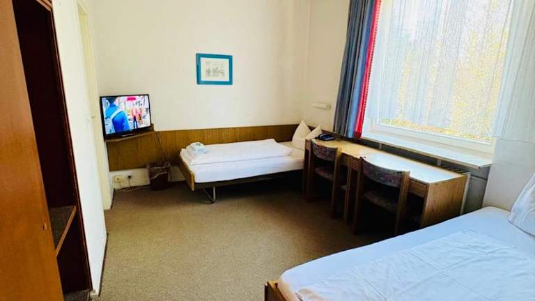 Jedes Zimmer im Lessing-Hof ist ausgestattet mit einem Schreibtisch, einem Flachbild-TV sowie einem eigenen Badezimmer. Bettwäsche und Handtücher sind ebenfalls bereitgestellt. Zudem verfügen alle Gästezimmer über einen Kleiderschrank.