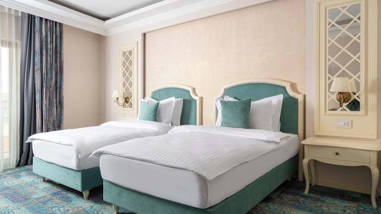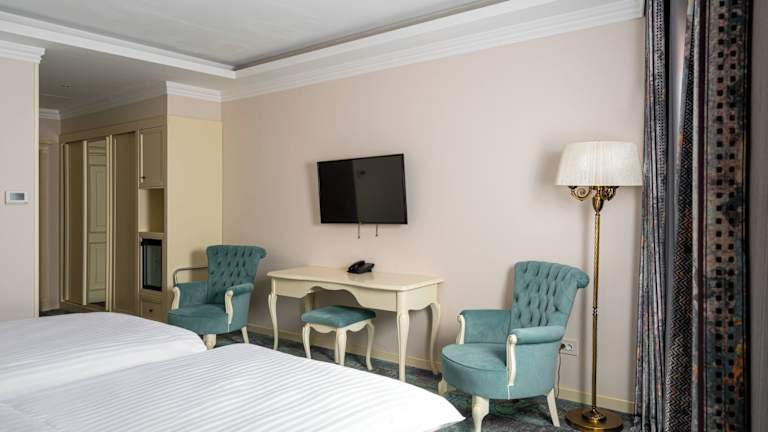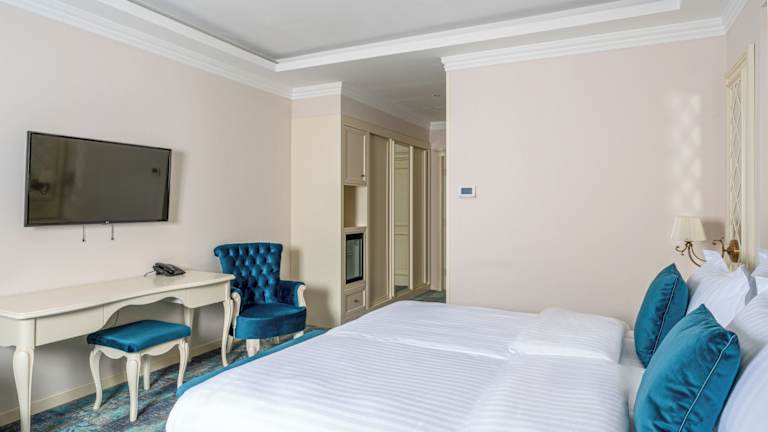 Die geräumigen, klimatisierten Zimmer sind ausgestattet mit einem Flachbild-Kabel-TV, einer Minibar sowie einem Schreibtisch. In den gefliesten Bädern stehen ein Haartrockner und Pflegeprodukte zur Verfügung.