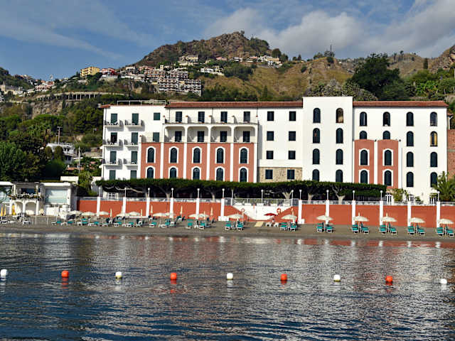 Das Hotel Lido Mediterranee liegt nur 5 Fahrminuten vom Stadtzentrum von Taormina entfernt und befindet sich in einer Bucht mit direktem Zugang zum Strand. Die Seilbahn, die Sie in nur 3 Minuten ins Zentrum von Taormina bringt, ist etwa 900 m vom Hotel entfernt. Der Busbahnhof ist nur etwa 200 m entfernt und der Bahnhof von Taormina ist ca. 4 km entfernt. Der Flughafen Catania-Fontanarossa ist etwa 60 km entfernt.