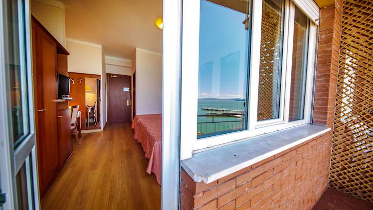 Die Zimmer im Hotel Lido sind komfortabel eingerichtet und verfügen über Klimaanlage, Sat-TV und einen Balkon. Einige Zimmer bieten zusätzlich Fitnessgeräte oder einen Panoramablick auf den See.