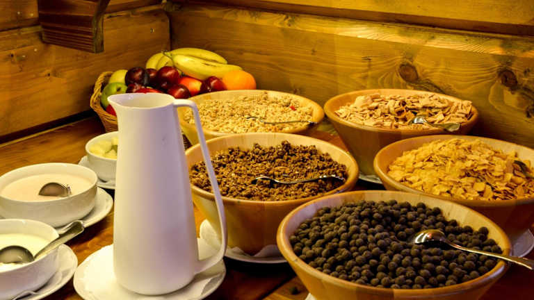 Gäste dürfen sich auf ein tägliches Frühstücksbuffet sowie auf Halbpension freuen. Das À-la-carte-Restaurant bietet traditionelle slowakische Spezialitäten.