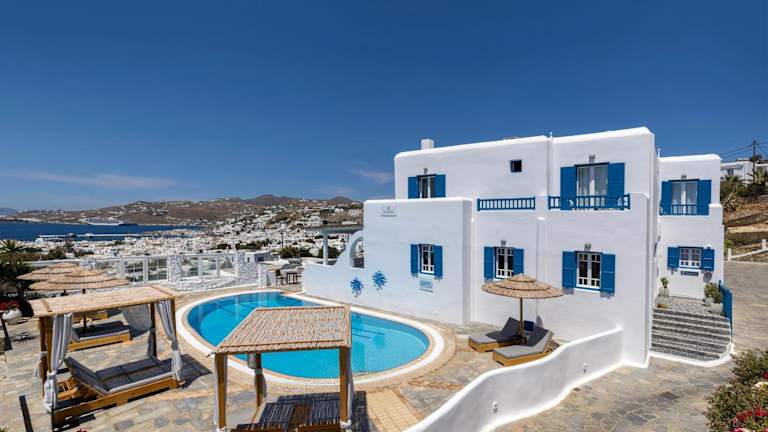 Das Marisso Hotel in Mykonos Stadt bietet eine malerische Kulisse mit Blick auf die Hauptstadt von Mykonos und ist der ideale Ort für einen erholsamen Urlaub. Genießen Sie den Pool mit Sonnenterrasse und die Snackbar. Die Unterkunft ist traditionell gebaut und bietet klimatisierte Wohneinheiten mit kostenfreiem WLAN und einem Balkon mit herrlichem Blick auf die Ägäis oder den Garten. Die Zimmer sind geschmackvoll eingerichtet und verfügen über moderne Möbel und traditionelle Elemente. Das freundliche Personal an der 24-Stunden-Rezeption steht Ihnen gerne zur Verfügung, um Ihnen bei der Organisation von Auto- oder Fahrradmieten zu helfen.