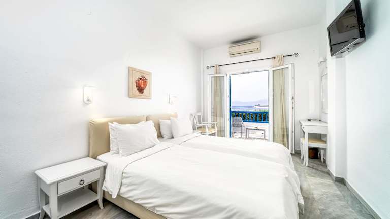 Die hellen und geräumigen Zimmer im Marisso Hotel sind klimatisiert und bieten modernen Komfort. Jedes Zimmer verfügt über Fliesenböden, Sat-TV und einen Kühlschrank. Die Einrichtung ist geschmackvoll mit modernen Möbeln und traditionellen Elementen gestaltet. Im eigenen Bad finden Sie einen Haartrockner und kostenfreie Pflegeprodukte. Auf Anfrage stehen Ihnen kostenlose Laptops zur Verfügung und auf Wunsch kann eine Massage auf dem Zimmer arrangiert werden.