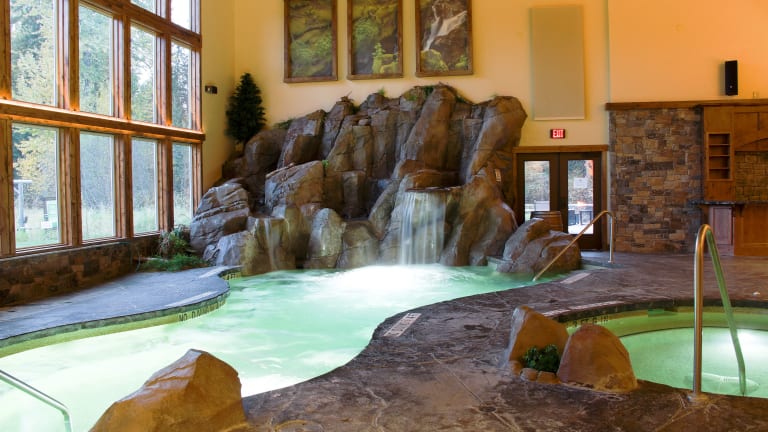 Die Lodge bietet eine heimelige Atmosphäre mit einem preisgekrönten Restaurant und einem umfangreichen Spa-Angebot. Die Bequemlichkeit der Gäste steht im Vordergrund, wobei zahlreiche Annehmlichkeiten zur Verfügung gestellt werden, darunter ein Fitnessraum, ein Dampfbad und Whirlpools.