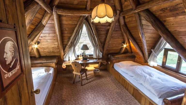 Die Zimmer sind mit Giebeldächern aus Holz ausgestattet und bieten einen Blick auf die Berge. Es gibt sowohl Zweibettzimmer mit Gemeinschaftsbad als auch Doppelzimmer mit eigenem Bad.