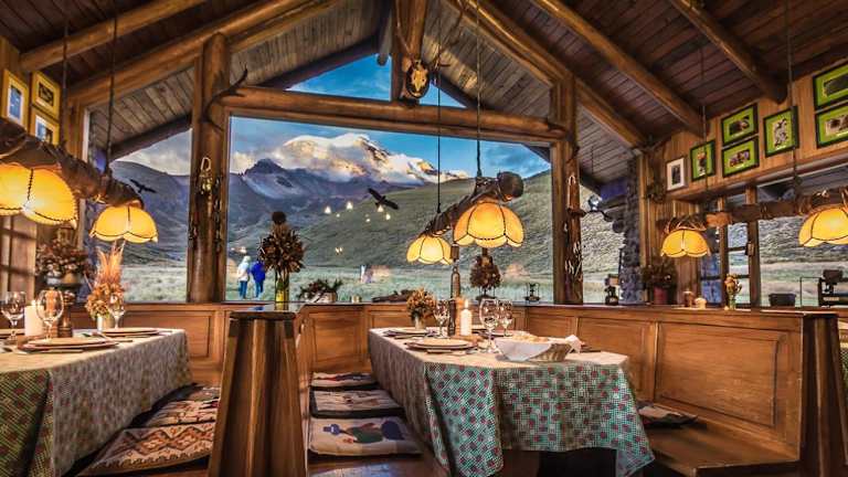 Das Restaurant der Chimborazo Lodge serviert täglich Frühstück und Abendessen. Gäste können internationale Gerichte bestellen.