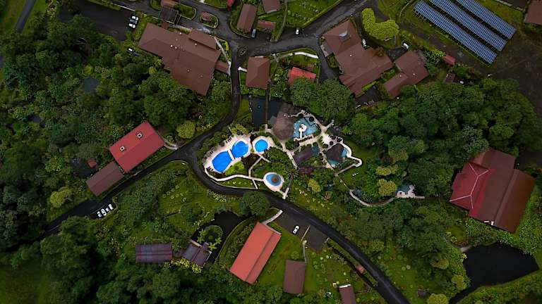 Das Hotel liegt attraktiv auf dem Weg zum Vulkan Arenal. Öffentliche Verkehrsmittel sind in 200 Metern gut zu Fuss erreichbar. Restaurants, das Stadtzentrum von La Fortuna sowie das Meer sind alle etwa 5 km entfernt. Der Flughafen liegt ca. 2 km entfernt.
