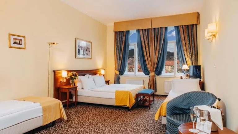 Das Hotel befindet sich direkt im Zentrum von Prag, nur 10 Gehminuten vom Nationalmuseum und dem berühmten Wenzelsplatz entfernt. Der U-Bahnhof I.P. Pavlova ist nur 300 m entfernt. Die Entfernung zum Flughafen beträgt ca. 12.4 km und zum Bahnhof etwa 500 m.