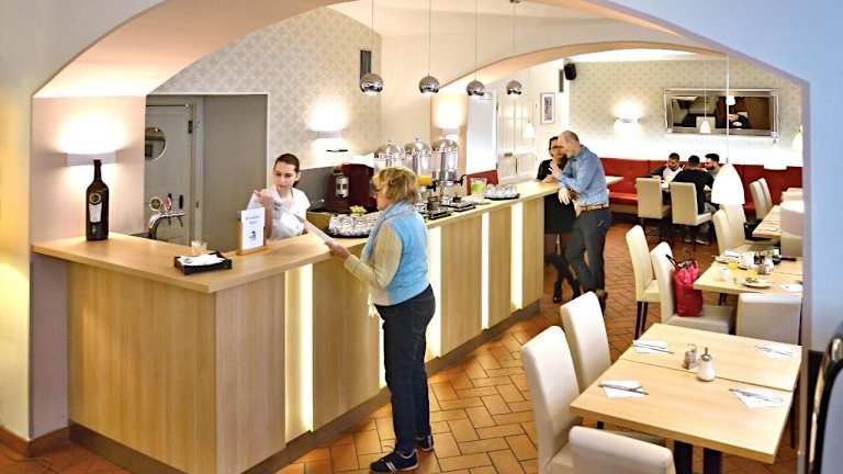 Im gastronomischen Bereich des Hotels stehen ein Restaurant und eine Bar zur Verfügung. Täglich wird ein reichhaltiges Frühstücksbuffet sowie Mittagessen angeboten. Auf Wunsch sind Diätgerichte und Kindermenüs erhältlich.