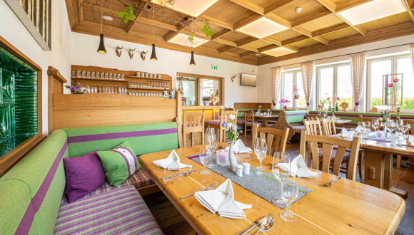 Regionalität, Nachhaltigkeit und Genuss kennzeichnen unser Restaurant im Hotel Loy. Auf der Speisekarte stehen traditionelle und internationale Gerichte. Die Zutaten stammen großteils von den umliegenden Bauern, aus der eigenen Jagd oder regionalen Gewässern. Eine ausgewählte Weinkarte ergänzt das Speisenangebot. Gerne beraten wir Sie bei der Auswahl persönlich. Das Restaurant bietet von 14:00 bis 21:00 Uhr warme Küche. Mittwoch Ruhetag. Unsere Hotelgäste erhalten eine Ermäßigung auf à-la-Carte-Speisen. Ein reichhaltiges Frühstücksbuffet ist im Preis inklusive.
