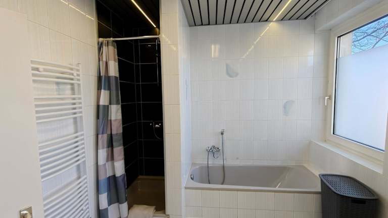 Die Ferienwohnung umfasst zwei Schlafzimmer und ein Badezimmer mit Dusche, Badewanne und Haartrockner. Handtücher und Bettwäsche werden bereitgestellt. Die Allergikerfreundlichen Nichtraucherzimmer sorgen für einen angenehmen Aufenthalt.