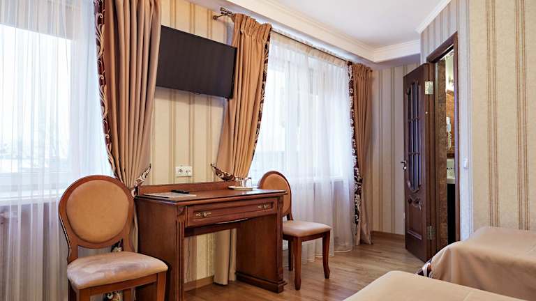 Das Hotel Lviv bietet eine 24-Stunden-Rezeption sowie einen Schönheitssalon. Die eleganten Zimmer sind hell und im klassischen Stil eingerichtet. Eine Terrasse steht ebenfalls zur Verfügung. Haustiere sind nicht gestattet.