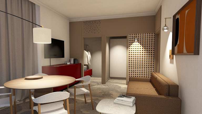 In den Zimmern sorgt eine Klimaanlage für ein angenehmes Raumklima. Zur Ausstattung gehören ein Safe, eine Minibar, ein Schreibtisch, ein Telefon, ein TV-Gerät und gratis Wifi. Die Badezimmer sind mit einer Dusche und einer Badewanne ausgestattet, zusätzlich stehen ein Haartrockner und Bademäntel zur Verfügung.