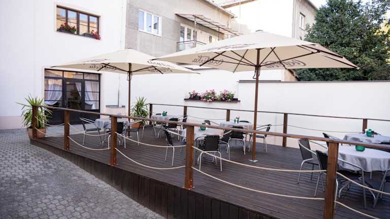 Das Hotel M verfügt über ein Restaurant mit einer Terrasse, das klassische tschechische Küche serviert. Es bieten sich verschiedene Gelegenheiten für eine genussvolle Verpflegung.