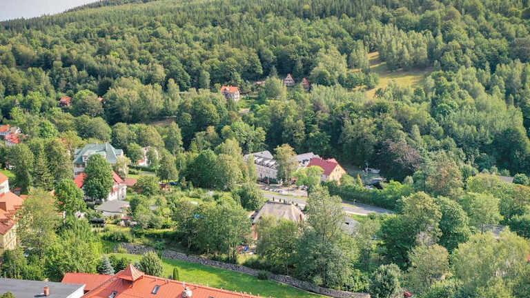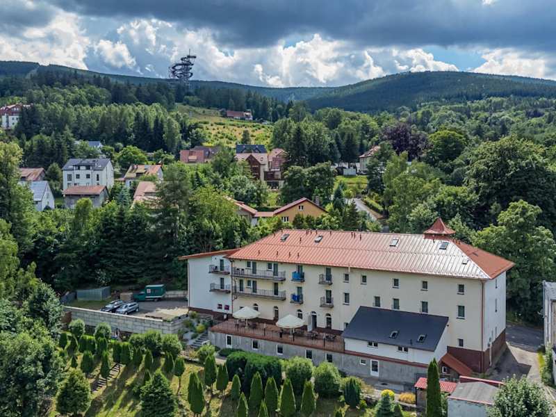 Das Hotel liegt idyllisch in der Nähe der malerischen Bergpfade und des beeindruckenden Sky-Walk-Turms. Nur ca. 10 Minuten zu Fuss durch den Zdrojowy-Park zum Zentrum, bietet es eine ruhige Auszeit abseits der Hektik. Auf 496 m Höhe ermöglicht das Hotel den Gästen, die unberührte Natur in vollen Zügen zu geniessen. Der Flughafen Wrocław ist etwa 150 km entfernt, während der Bahnhof Świeradów Zdrój nur etwa 500 m entfernt ist. Ideal für Erholungssuchende und Naturliebhaber.