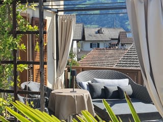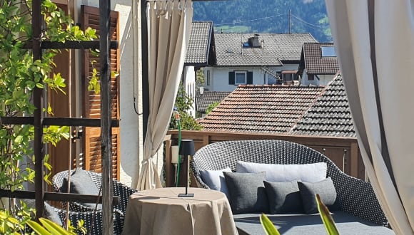 Lassen Sie die Seele baumeln und kommen Sie zur Ruhe. In unseren komfortabel eingerichteten Zimmer verbringen Sie garantiert traumhafte Nächte. Ausgestattet mit allen Annehmlichkeiten wird es Ihnen hier an nichts mangeln. Badeslipper, Regenschirme sowie ein Wanderrucksack liegen für die Dauer Ihres Aufenthaltes für Sie bereit. Doppelzimmer ohne Balkon (zwei bis drei Personen) In unserem 23 Quadratmeter großen Doppelzimmer ohne Balkon finden Sie ein Badezimmer mit Dusche, WC und Fön sowie einen Flachbildschirm, Radio, Schranksafe, Sitzgelegenheit und einen Schreibtisch. Doppelzimmer Balkon Südseite (zwei bis drei Personen) Auf 24 bis 25 Quadratmetern verfügt das Doppelzimmer mit Panoramablick ins Eschtal über ein Badezimmer mit Dusche, WC und Fön sowie über einen Flachbildschirm, Radio, Schranksafe, Sitzgelegenheit und über einen Schreibtisch. Doppelzimmer Balkon Ostseite (zwei bis drei Personen) Mit 24 bis 25 Quadratmetern finden Sie im Doppelzimmer mit Bergblick auf Hirzer und Ifinger ein Badezimmer mit Badewanne mit Duschvorrichtung, WC, Bidet und Fön sowie einen Flachbildschirm, Radio, Schranksafe, Sitzgelegenheit und einen Schreibtisch. Doppelzimmer Superior Terrasse Südseite (zwei bis drei Personen) Das Doppelzimmer Superior bietet mit 29 Quadratmetern und Panoramablick ins Eschtal ein Badezimmer mit Dusche, WC und Fön sowie einen Flachbildschirm, Radio, Schranksafe, Sitzgelegenheit und einen Schreibtisch. Familiensuite mit Balkon (zwei bis vier Personen) Die Familiensuite für zwei bis vier Personen mit Blick auf den Hausberg Hochmut verfügt auf 70 Quadratmetern über ein Doppelzimmer mit begehbarem Schrank, Schreibtisch, Badezimmer mit Doppelwaschbecken, Badewanne, Dusche, Fön und Bidet sowie über ein separates WC. Ein weiteres Zimmer ist mit einem französischem Bett, Schreibtisch, Badezimmer mit Dusche, WC und Infrarotkabine ausgestattet. Im Wohnraum finden Sie einen Flachbild-TV. Einzelzimmer ohne Balkon Vom Einzelzimmer mit 15 Quadratmetern genießen Sie einen herrlichen Ausblick auf den Hausberg Hochmut und in Richtung Vinschgau. Das Zimmer verfügt über ein Badezimmer mit Dusche, WC und Fön sowie über einen Flachbildschirm, Radio und über einen Schranksafe. Einzelzimmer mit Balkon Das Einzelzimmer mit Panoramablick ins Eschtal verfügt mit seinen 12 Quadratmetern über ein Badezimmer mit Dusche, WC und Fön sowie über einen Flachbildschirm, Radio und über einen Schranksafe. Einzelzimmer mit Balkon Das 15 Quadratmeter große Einzelzimmer mit Blick auf den Hochmut ist mit einem Badezimmer mit Dusche, WC und Fön sowie mit einem Flachbildschirm, Radio und einem Schranksafe ausgestattet.