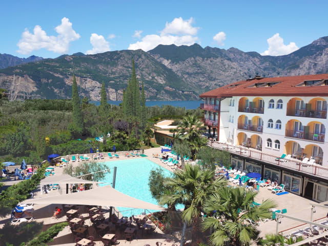 Ein eindrucksvoller jahrhundertealter Olivenhain von dreißigtausend Quadratmetern umgibt unser Hotel in Malcesine del Garda. Dieses Viersternehotel von bedeutendem Ausmaß verfügt über den Komfort eines Luxushotels und die Exklusivität seiner beneidenswerten Höhenlage. Diese bietet Landschaftsbilder vom gesamten Gardasee, die den Atem stocken lassen. Es ist das ideale Hotel für Familienurlaub mit Kindern, für Sportliche und für alle Paare, die den rechten Kompromiss zwischen Erholung und sportlicher Aktivität suchen.Im Hotel Majestic Palace sind die Möglichkeiten unendlich, um den Urlaub ganz im Zeichen von Vergnügen und Entspannung zu gestalten. Unseren Gästen stehen zur Verfügung: Tennisplatz, Kinderspielplatz und Miniclub mit Animateurin, ein unterhaltsamer Minigolfplatz, Beachvolleyball, drei Pools… und noch vieles mehr! Tagsüber wird ein Shuttleservice vom Hotel zum Zentrum von Malcesine und zurück angeboten, um einen angenehmen Aufenthalt am Gardasee zu gewährleisten, ohne das eigene Auto bewegen zu müssen.