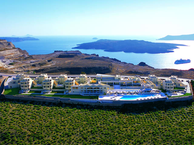 Das The Majestic Hotel auf Santorin bietet seinen Gästen einen beeindruckenden Aufenthalt auf den Klippen mit herrlichem Blick auf die Ägäis und den Vulkan. Die schallisolierten Zimmer verfügen über einen eigenen Balkon, von dem aus Sie die atemberaubende Landschaft genießen können. Das Hotel bietet auch eine Vielzahl von Einrichtungen, darunter 2 Süßwasserpools, einen Wellnessbereich und eine Auswahl an gastronomischen Einrichtungen.