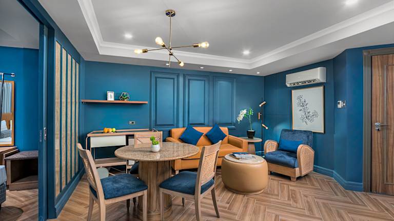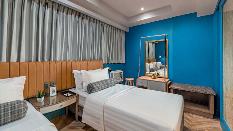 Die Zimmer sind mit Klimaanlage, einem Queensizebett und einem Sofabett ausgestattet. Zustellbetten können angefordert werden. Jedes Zimmer verfügt über einen Safe, eine Minibar, einen Kühlschrank sowie Tee- und Kaffeemaschine. Die Badezimmer sind mit einer Dusche, einer Badewanne und Pflegeprodukten ausgestattet. Alle Zimmer bieten gratis Wifi und sind als Familien- oder Nichtraucherzimmer buchbar.
