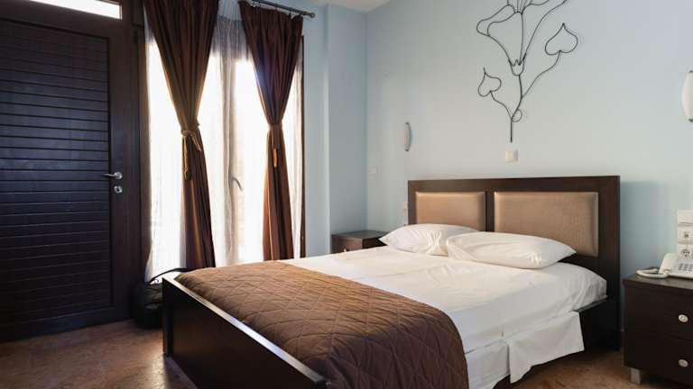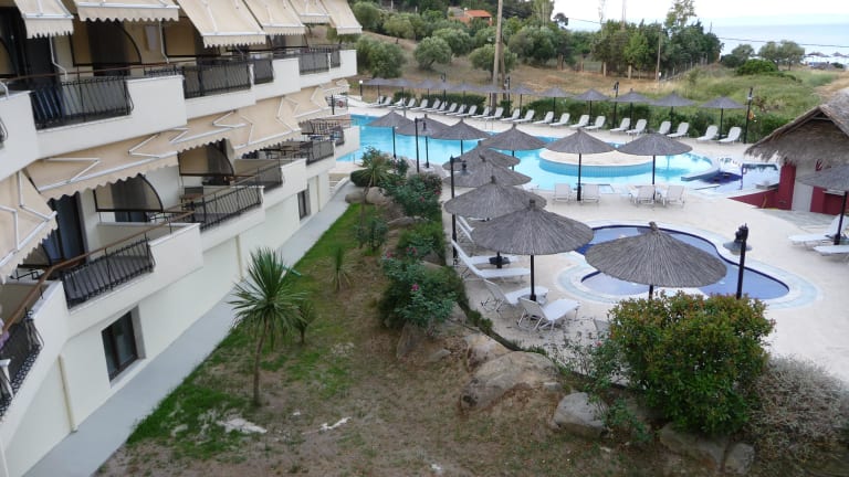 Die Zimmer sind klimatisiert und verfügen über Balkon mit Ausblick auf den Toronäischen Golf. Zur Ausstattung gehören ein Kühlschrank, ein TV, ein Telefon und kostenloses Wifi. Die Badezimmer sind mit Dusche und Haartrockner ausgestattet. Kinderbetten sowie Zustellbetten sind für die jüngsten Gäste verfügbar.