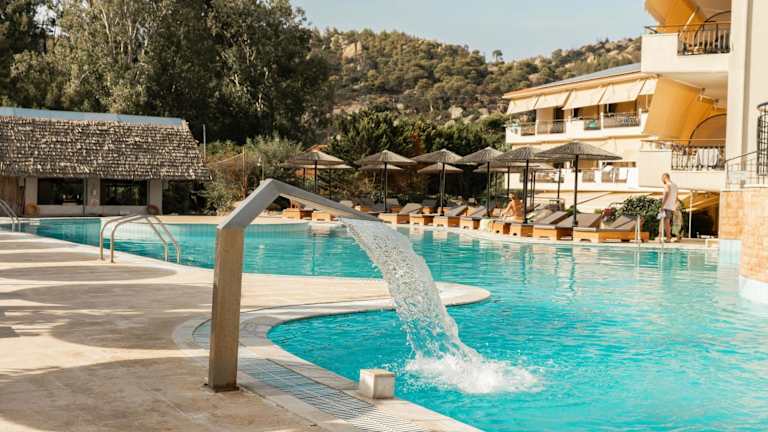 Die Unterkunft bietet Halbpension mit einem reichhaltigen Frühstücksbuffet und einem Abendmenü, das mediterrane Gerichte umfasst. Tagsüber verwöhnt die Poolbar die Gäste mit erfrischenden Getränken und Kaffee. Es besteht auch die Möglichkeit zu Lunchpaketen.