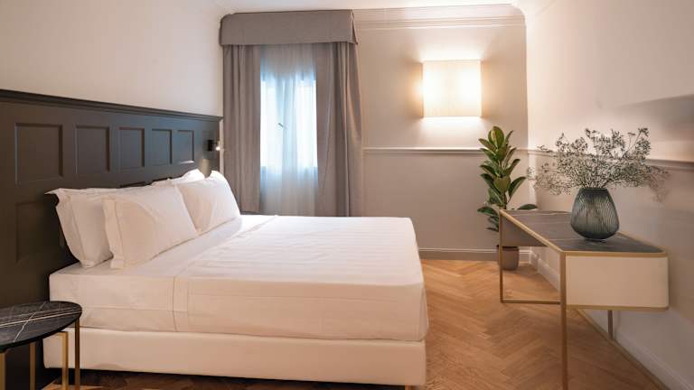 Das Hotel verfügt über 31 Zimmer, darunter 9 Einzel- und 22 Doppelzimmer, die auf 4 Etagen verteilt sind und bequem mit einem Aufzug erreichbar sind. Die Zimmer sind mit Klimaanlage, Heizung, Safe, Minibar, Schreibtisch und WLAN ausgestattet. Einige Zimmer verfügen über einen Balkon. Die Badezimmer sind mit Dusche oder Badewanne, Bidet, Haartrockner und Bademänteln ausgestattet. Rollstuhlgerechte Zimmer sind ebenfalls verfügbar.