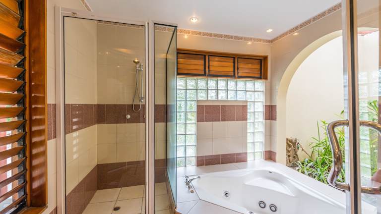 Die Unterkunft bietet verschiedene Zimmertypen, darunter Bungalows mit Garten- oder Meerblick. Alle Zimmer sind mit moderner Ausstattung wie Klimaanlage, Kühlschrank, Safe und Terrasse mit Sitzgelegenheit ausgestattet. Einige Bungalows verfügen über eine Badewanne mit integrierter Whirlpool-Funktion. Internetzugang ist gegen Gebühr verfügbar.