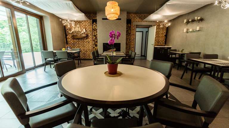 Das Hotel Mandát verfügt über ein Restaurant, in dem Sie köstliche Mahlzeiten genießen können. Beginnen Sie den Tag mit einem kontinentalen Frühstück und lassen Sie sich abends von den kulinarischen Köstlichkeiten des Restaurants verwöhnen. Eine Bar lädt ebenfalls zum Verweilen ein, wo Sie einen Drink genießen und den Tag ausklingen lassen können.